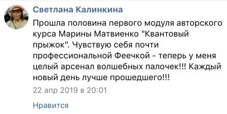 Отрабатываете практики Квантовых трансформаций, доводите их до автоматизма и навсегда закрепляете в себе привычку находится в моменте "здесь и сейчас".
